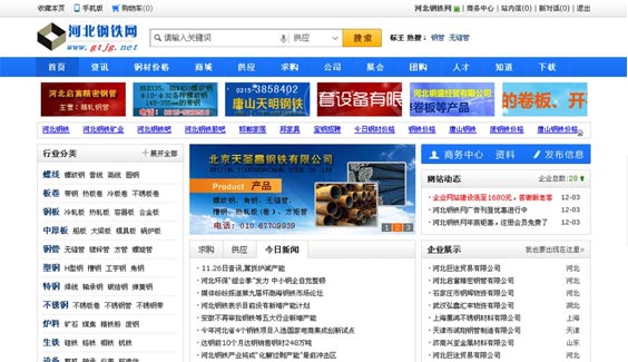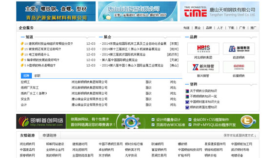 負(fù)責(zé)河北鋼鐵網(wǎng)的網(wǎng)站改版全體業(yè)務(wù),服務(wù)內(nèi)容包括:網(wǎng)頁設(shè)計、網(wǎng)頁制作、網(wǎng)站程序開發(fā)等網(wǎng)站建設(shè)服務(wù),河北鋼鐵網(wǎng)是河北最大的鋼材信息門戶網(wǎng)站,故網(wǎng)站設(shè)計以藍(lán)色為主打色系,襯托科技、節(jié)能、先進(jìn)、向上的行業(yè)意識,網(wǎng)站整體設(shè)計高端、大氣、功能全面的綜合性網(wǎng)站。