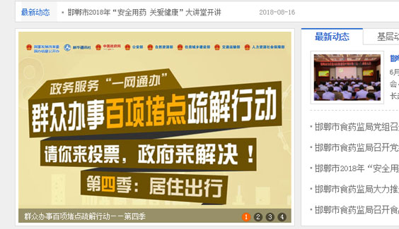 負(fù)責(zé)邯鄲市食品藥品監(jiān)督管理局網(wǎng)站建設(shè)的全體服務(wù),包括:網(wǎng)站設(shè)計、制作開發(fā)、域名空間等網(wǎng)站建設(shè)服務(wù)。全站采用div+css構(gòu)架網(wǎng)站結(jié)構(gòu),并對于各個細(xì)節(jié)做了詳細(xì)優(yōu)化,使代碼更精簡,為企業(yè)后期進(jìn)行網(wǎng)絡(luò)營銷做好前提基礎(chǔ)。
