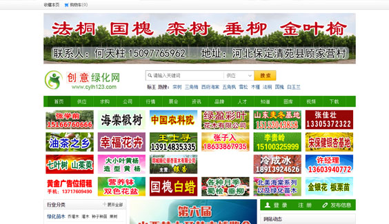 創(chuàng)藝綠化網(wǎng)是國內(nèi)較早的苗木花卉行業(yè)門戶網(wǎng)站,經(jīng)過多年的運(yùn)行和多次的改動(dòng),網(wǎng)站已發(fā)展成為框架完善、信息豐富、功能強(qiáng)大的電子商務(wù)服務(wù)平臺(tái),是園林、苗木、花卉、綠化行業(yè)的商業(yè)貿(mào)易門戶網(wǎng)站,目前已有全國各個(gè)省市的企業(yè)在本站注冊(cè)成為正式會(huì)員。