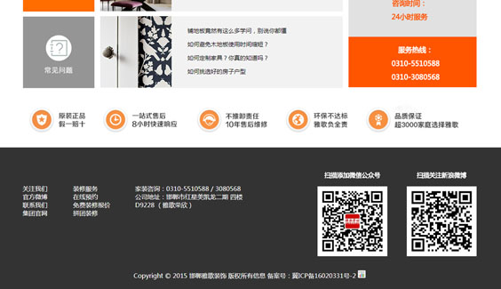 河北雅歌裝飾工程有限公司成立于2004年,2008年在邯鄲推出家裝套餐,在成立之初,便以省時(shí)、省力、省心又省錢(qián)的優(yōu)勢(shì)強(qiáng)勢(shì)登陸邯鄲,憑過(guò)硬的工藝品質(zhì)和服務(wù),在邯鄲取得優(yōu)異的市場(chǎng)成績(jī),給傳統(tǒng)的裝修模式帶來(lái)了巨大的沖擊,完全顛覆了傳統(tǒng)的計(jì)價(jià)方式,以前所未有的高品質(zhì)和合理的價(jià)格惠及廣大消費(fèi)者,引發(fā)室內(nèi)裝修行業(yè)的新革命。工藝、質(zhì)量和服務(wù)是雅歌裝飾的立身之本,公司所有的“8S樣板工程”以技術(shù)創(chuàng)新解決室內(nèi)裝修施工過(guò)程中的環(huán)境、材料、工藝、管理等難題,以解決工程施工中人為因素影響的難點(diǎn)為突破,在裝修施工工藝、材料和規(guī)范等方面不斷創(chuàng)新,用新材料、新技術(shù)、新工藝、新模式,實(shí)現(xiàn)了所有裝修工程品質(zhì)的統(tǒng)一性和均好性。
