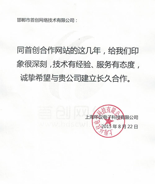 同首創(chuàng)合作網(wǎng)站的這幾年,給我們印象很深刻,技術(shù)有經(jīng)驗、服務(wù)有態(tài)度,誠摯希望與貴公司建立長久合作。
